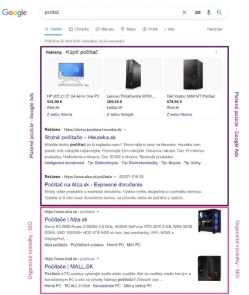 U pojmů týkajících se webového prodeje tahá SEO za kratší konec - placené výsledky obsazují nejlepší pozice ve výsledcích. Většina vyhledávání na Googlu má však informační záměr, a tam mají organické výsledky téměř 100% pokrytí.